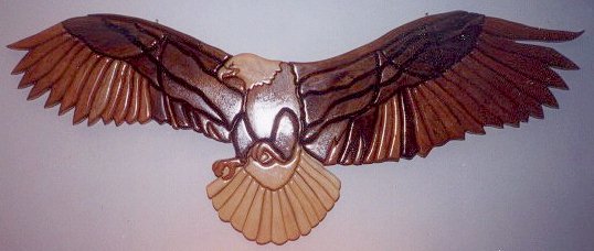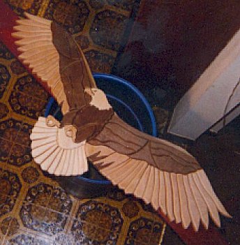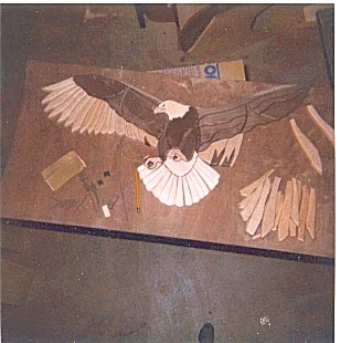Here is a similar eagle being assembled. Notice the bottom feathers are lighter on this one. |