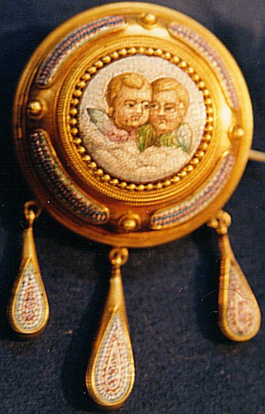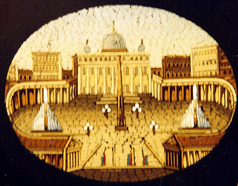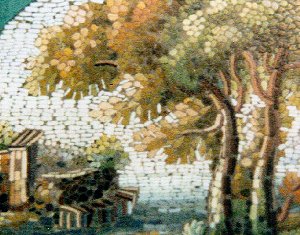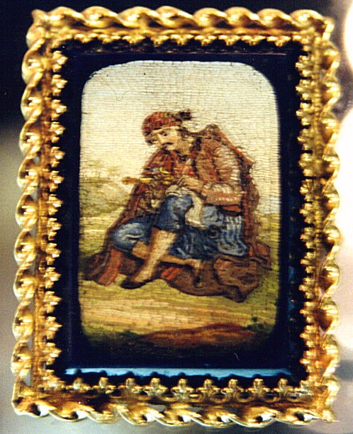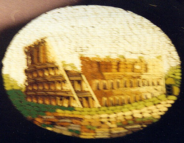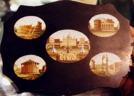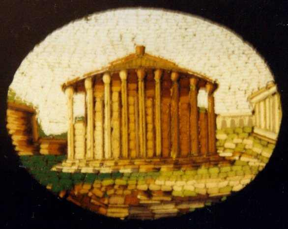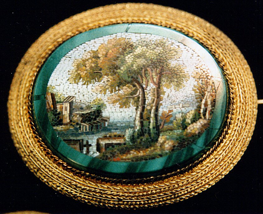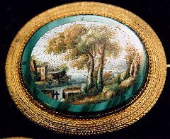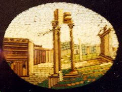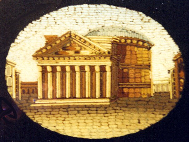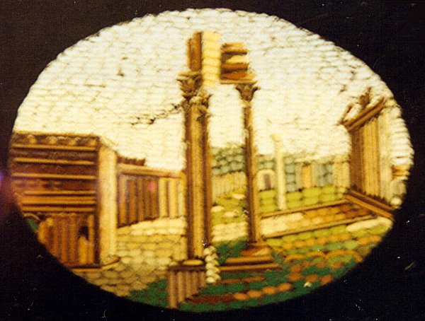 This scenes were real popular to do. If you haven't guessed micro-mosaics were done by Italians. It was a popular art last Century. The four outer pictures are about 2 inches wide.